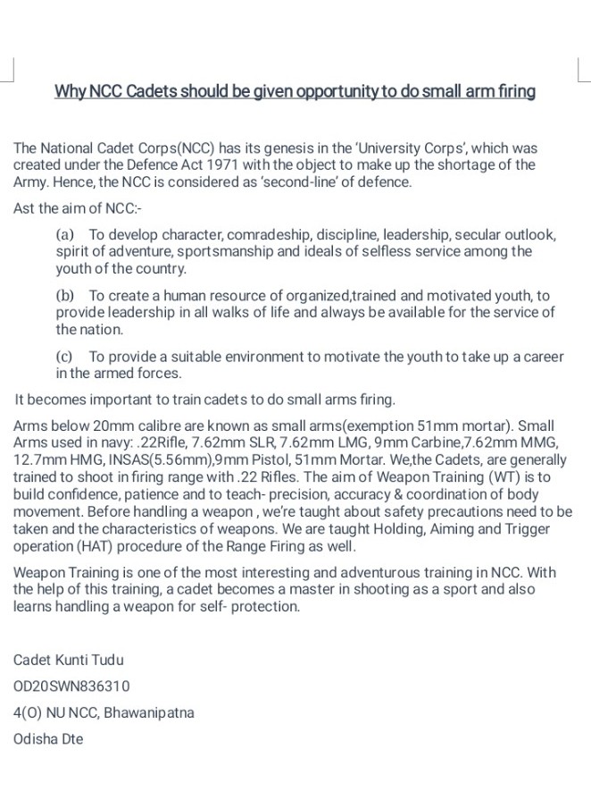 Why NCC Cadets should be given the opportunity to do small arm firing.