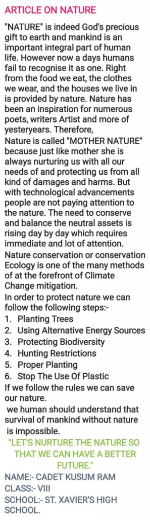 Cadet Kusum Ram, OD21JWF323165, UNIT-NO.1(O)AIR SQN,PALLASPALLI, St. Xavier's High School. Khandagiri