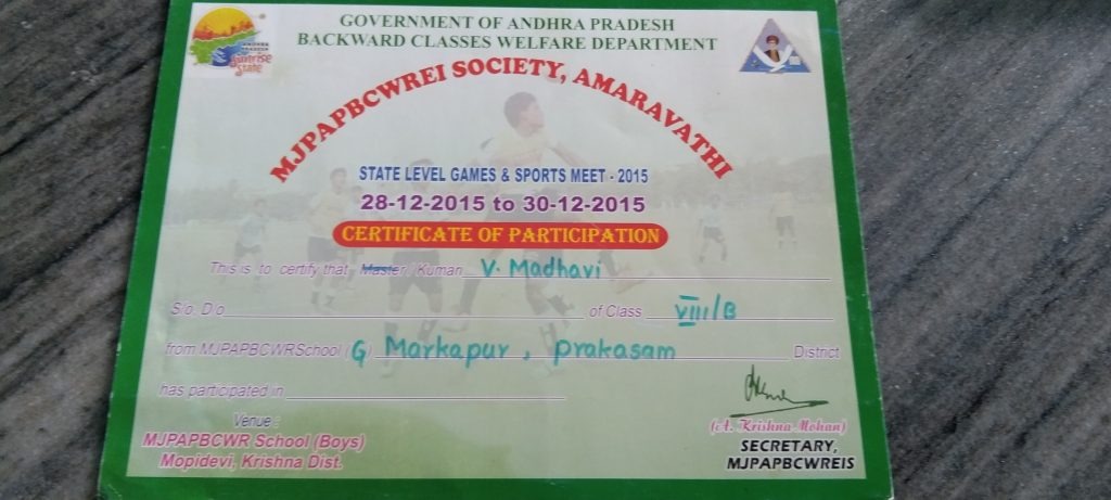 Cadet Madhavi this is my sports certificates
