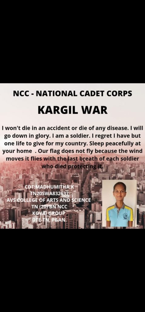 TN20SWA832637 CDT:MADHUMITHA. K AVS COLLEGE OF ARTS AND SCIENCE 12(TN)BN NCC KOVAI GROUP DET:TN,P&AN