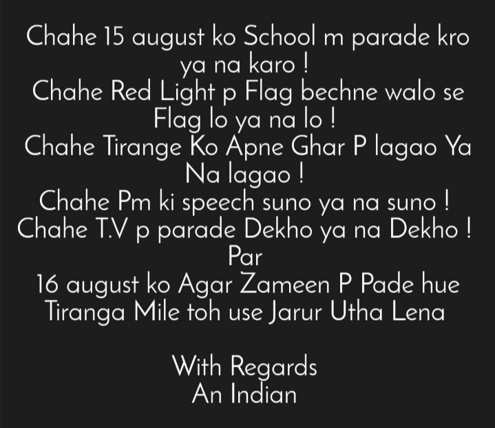 Cadet Manisha Chauhan From 1 Raj armd sqn. Jaipur Reg. No.-RJ/20/SWA/175236 THIS TS THE MESSAGE TO THOSE PEOPLE WHO CELEBRATE INDEPENDENCE ONLY ON 15 AUG. BT NEXT DAY SOME VERY BAD IMAGE COME IN FRONT OF US #LETCELEBRATEFREEDOMWHOLEYEAR