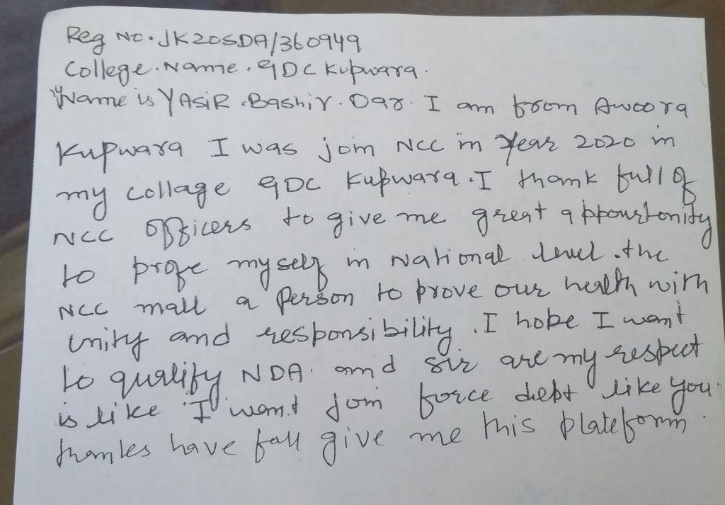 Yasir Bashir dar JK20SDA 360949 GDC Kupawara 3 jk bn ncc baramulla