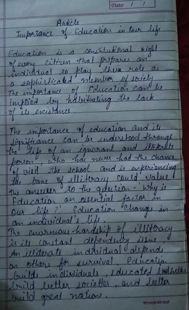 ARTICLE ON IMPORTANTACE OF EDUCATION