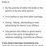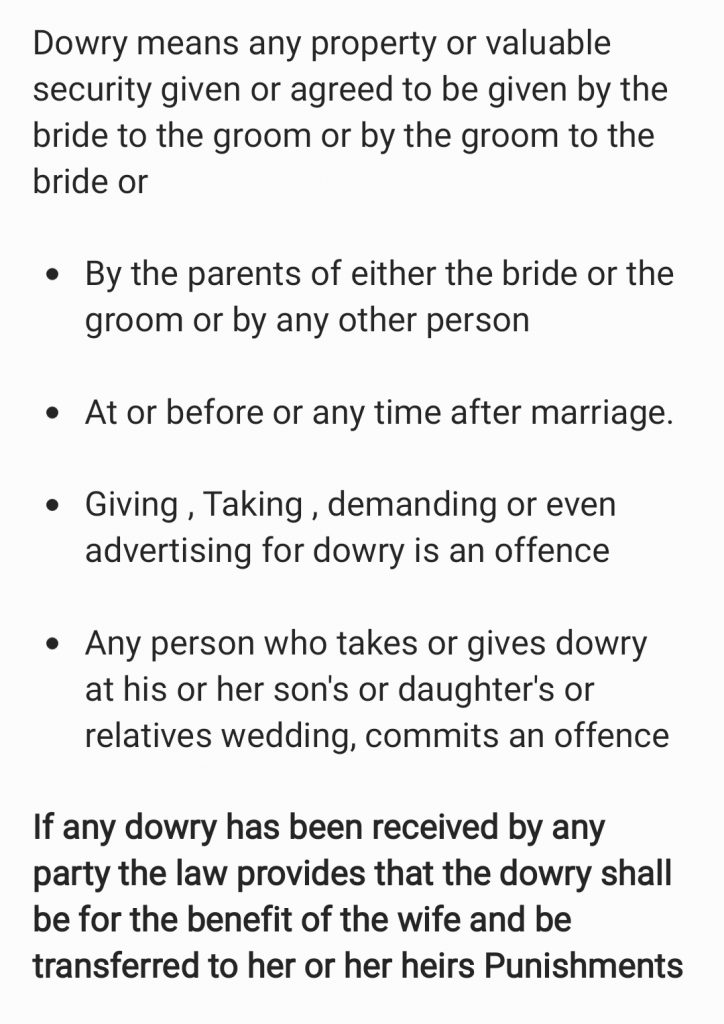Dowry system means any property or valuable security given or agreed to be given by the bride to the groom. But its out of laws