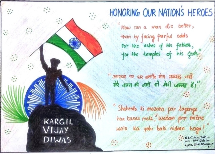 I Cadet Neha from 2j&k girls bn GCW Gandinagar Jammu I post poster on Kargil Vijay Diwas which is celebrated on 26th of July.Kargil Vijay Diwas celebrated in honour of the Kargil War heroes.We salute war heroes for the sacrifice they made for Us.