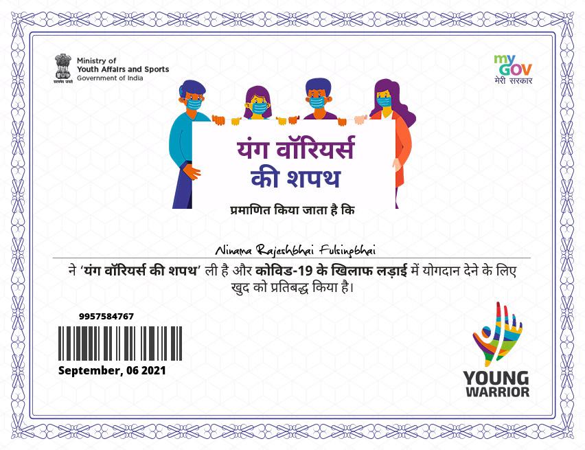 UNIT - 30 GUJ NCC BN GODHARA CADET - NINAMA RAJESHBHAI FULSINGBHAI REG NO - GJ 19 SDA0423303 K R DESAI ARTS AND COMMERCE COLLEGE JHALOD