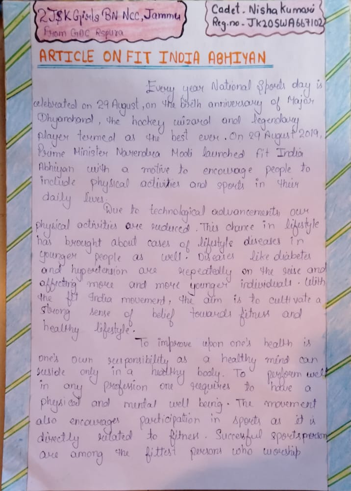 Name _ Cadet Nisha kumari Reg.no._ JK20SWA667102 2J&K Girls BN NCC, Jammu from GDC Rspura