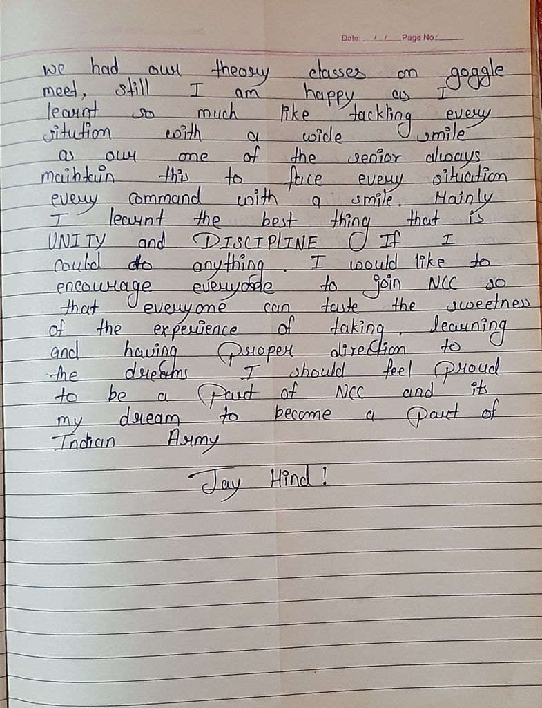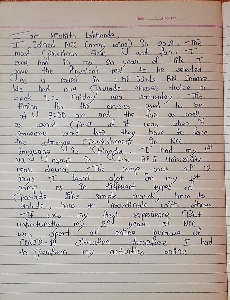 Unit : MP Girls Bn NCC ,