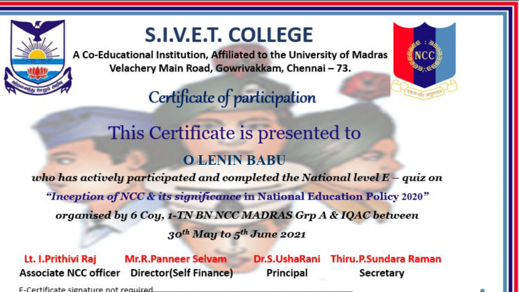 Participated in E Quiz and gained the knowledge and significance of NCC in new educational policy 2020
