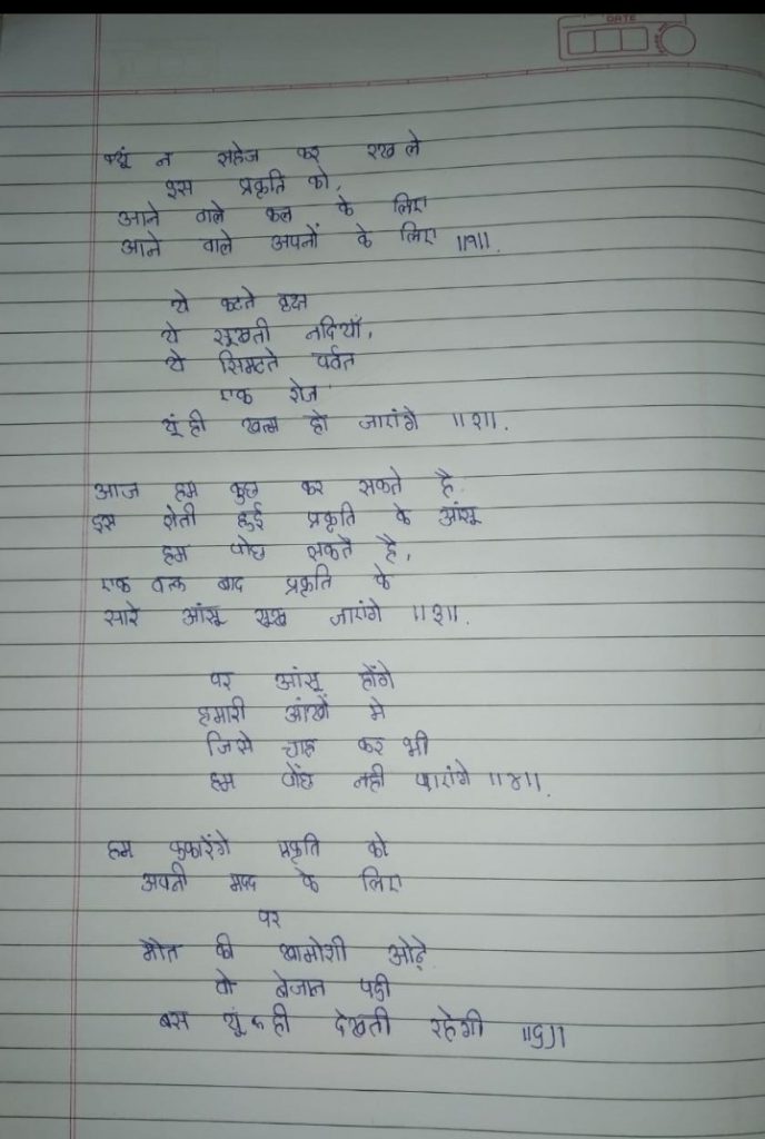 पर्यावरण विषय पर जनजागृती हेतू कविता