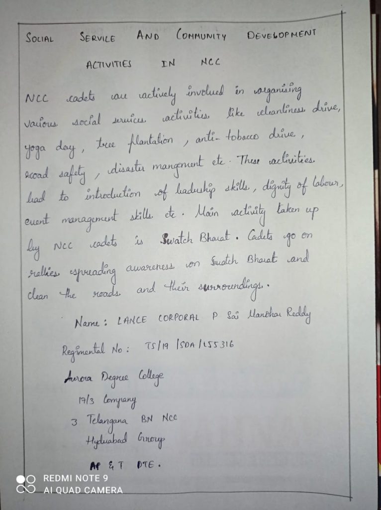 Name:LANCE CORPORAL P Sai Manohar Reddy Regimental no:TS/19/SDA/155316