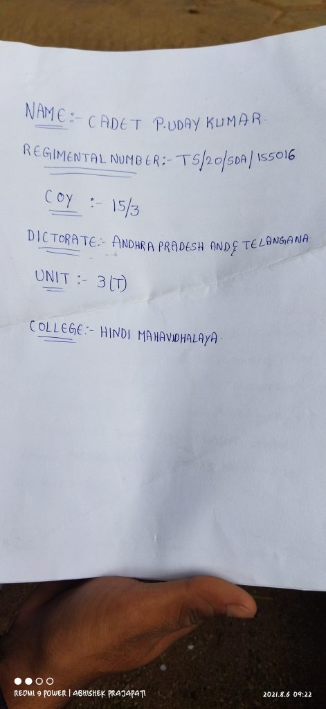 Unit : T Bn NCC , Group HQ : NCC Gp HQ Hyderabad, Directorate : NCC Dte, AP & T