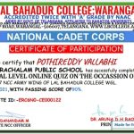 Cadet LOKESH PERUMALLA TS20/SDA/205115 KAKATIYA GOVERNMENT DEGREE COLLEGE, HANAMKONDA 10TBn Unit, warangal.