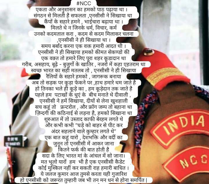 Cadet - Piyush Gautam Reg.No. UP/20/SD/A/543365 7/63 UP SD COY NCC I. R. Inter college Sandila 63 UP BN NCC LUCKNOW