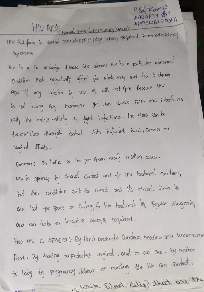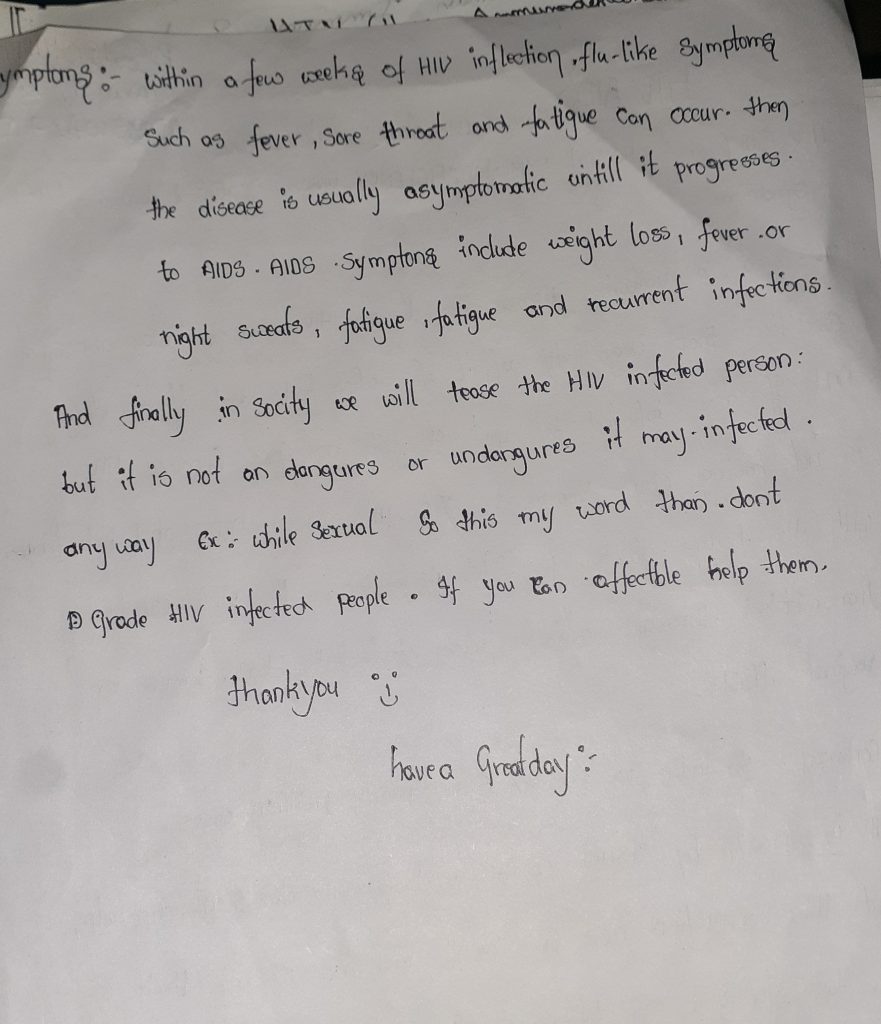 I am P. Sai Ramya Please care full with HIV Because no treatment