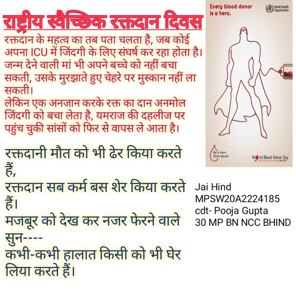 राष्ट्रीय स्वेछिक रक्तदान दिवस