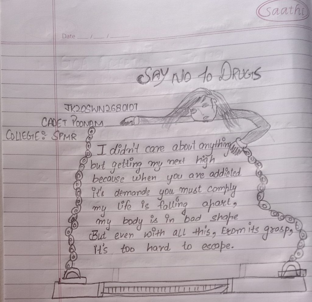 Jai hind Jk20SWN2680107 Cadet Poonam Sharma :The worst thing is watching someone down and not being able to convince them that they can save themselves by just standing up...?...