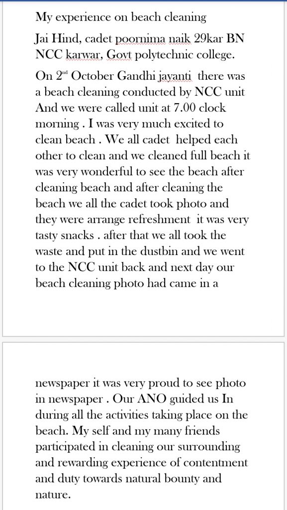 Cadet no : KA20SWA551679 Cadet name : Poornima Nail Unit : 29 KAR BN NCC karwar College : government polytechnic college karwar