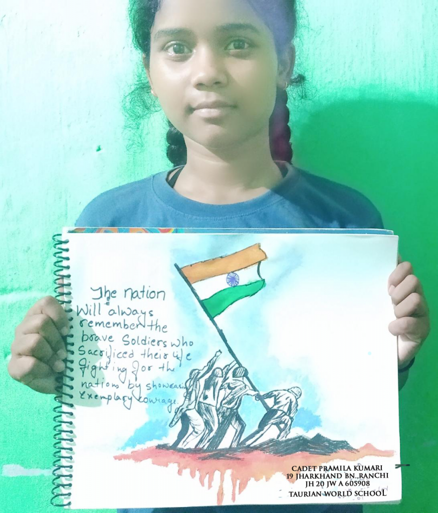 I NCC cadet JH 20 JW A 605908 Pramila Kumari,19 Jharkhand Bb.NCC,Ranchi, Student of Taurian World School,Ranchi drew this painting . This painting is dedicated to our brave Indian soldiers who sacrificed themselves for the nation.