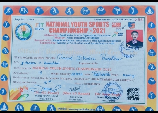 Jai Hind Sir hamare kuch teen char mhine pahlle natinol teakwond or karate ke turnamant hui the too sir vaha par mara pradrtion achaa raha vaha par mane pane state ke thrapse khalla or natinol par gold jita jai hind jai bharat