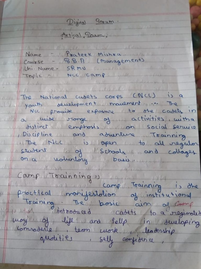 This is Prateek Mishra student of B.B.A from SRMU, Lucknow. In this article I have briefly discussed about NCC Camps.
