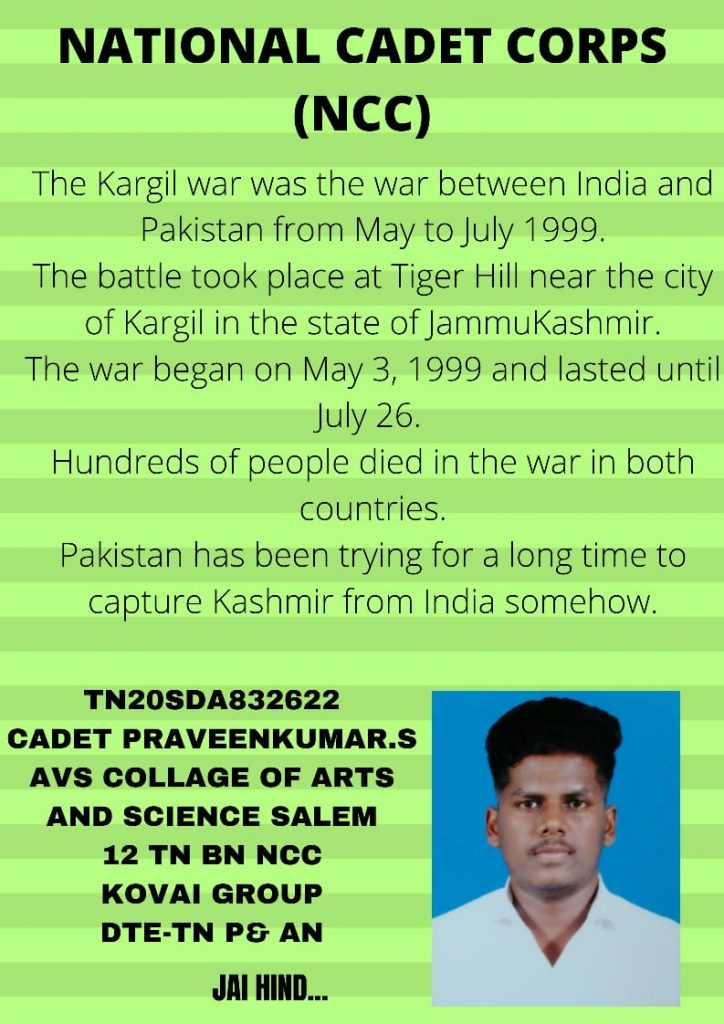 TN20SDA832622 CADET PRAVEENKUMAR.S AVS COLLAGE OF ARTS AND SCIENCE SALEM 12 TN BN NCC KOVAI GROUP DTE-TN P& AN
