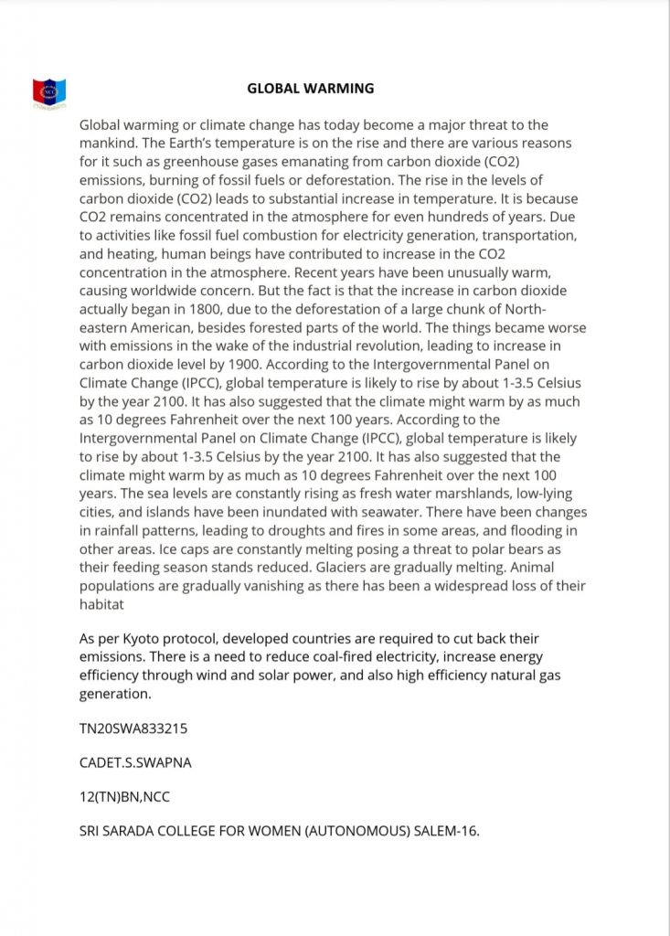 CADET.S.SWAPNA TN20SWA833215 SRI SARADA COLLEGE FOR WOMEN (AUTONOMOUS)SALEM-16. 12(TN)BN NCC, KOVAI GROUP, TN,P& AN DTE.