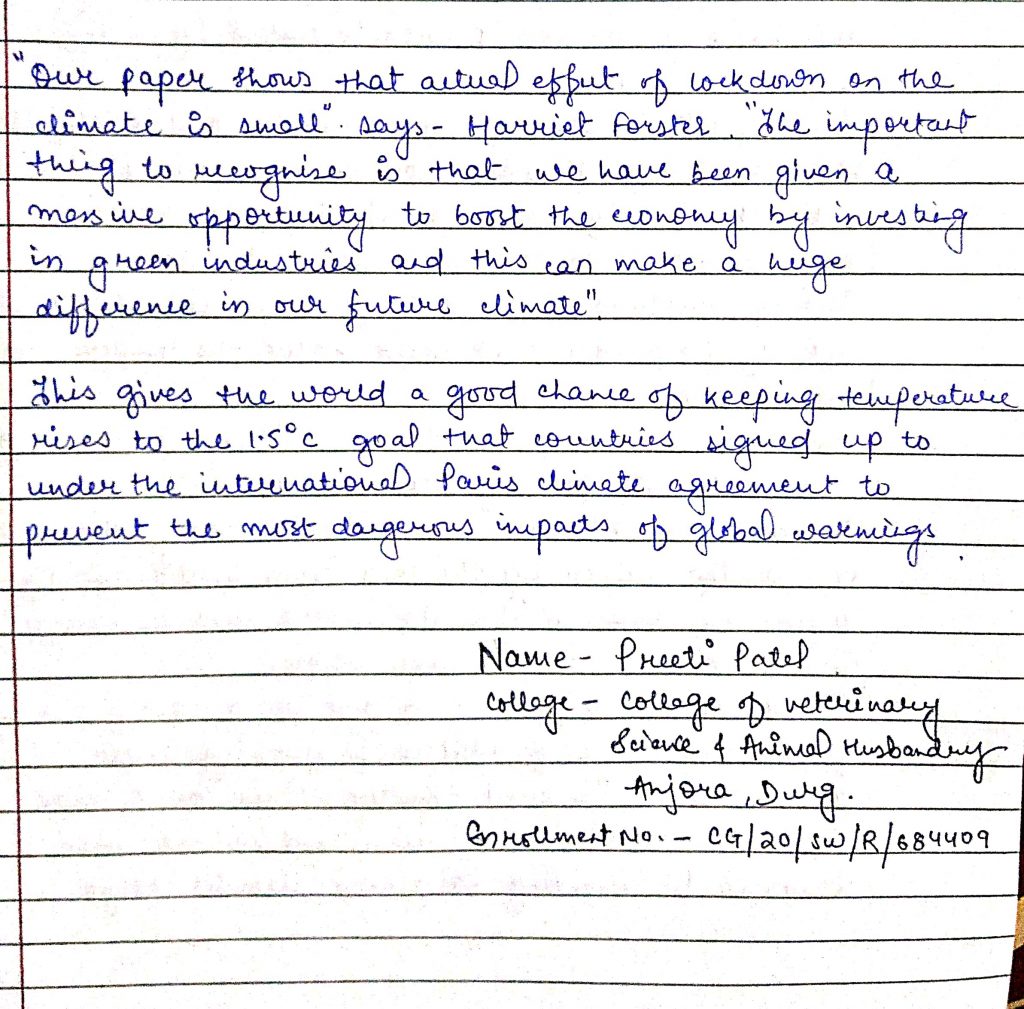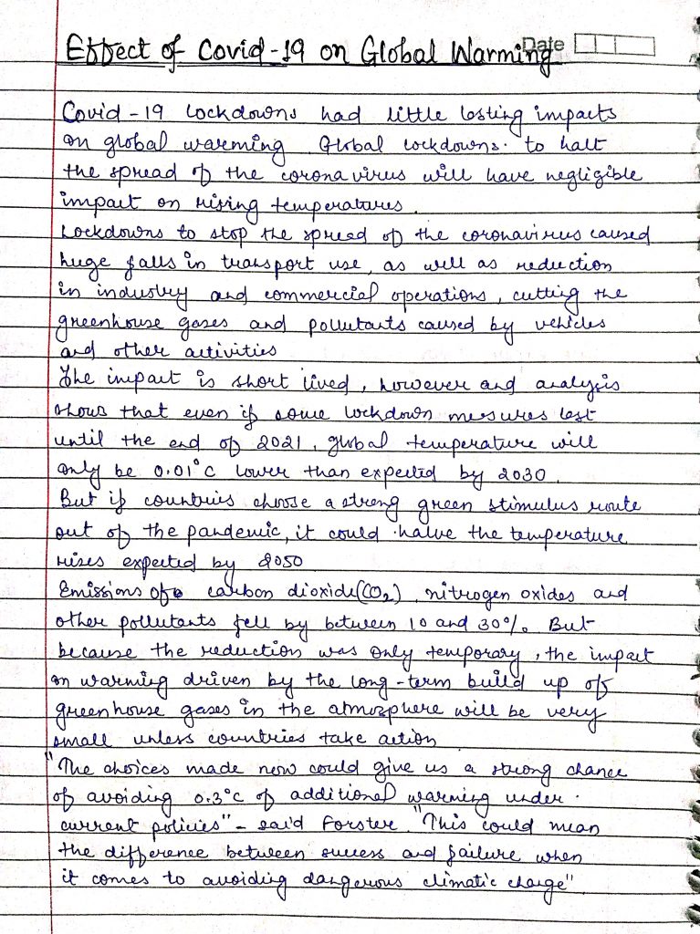 It's a small article about impact of covid 19 lockdown on global warming and some measures.