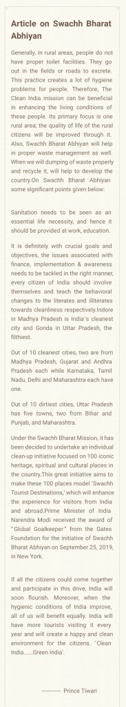 Article on Swachh Bharat Abhiyan By ---- Prince Tiwari