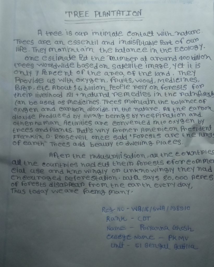Reg no - Wb/ 18/swa 198910 Rank- cdt Name - Priyanka ghosh College name - pkmv Unite - 51 bengal battalion Group - Burdwan Directorate - wb and sikkim