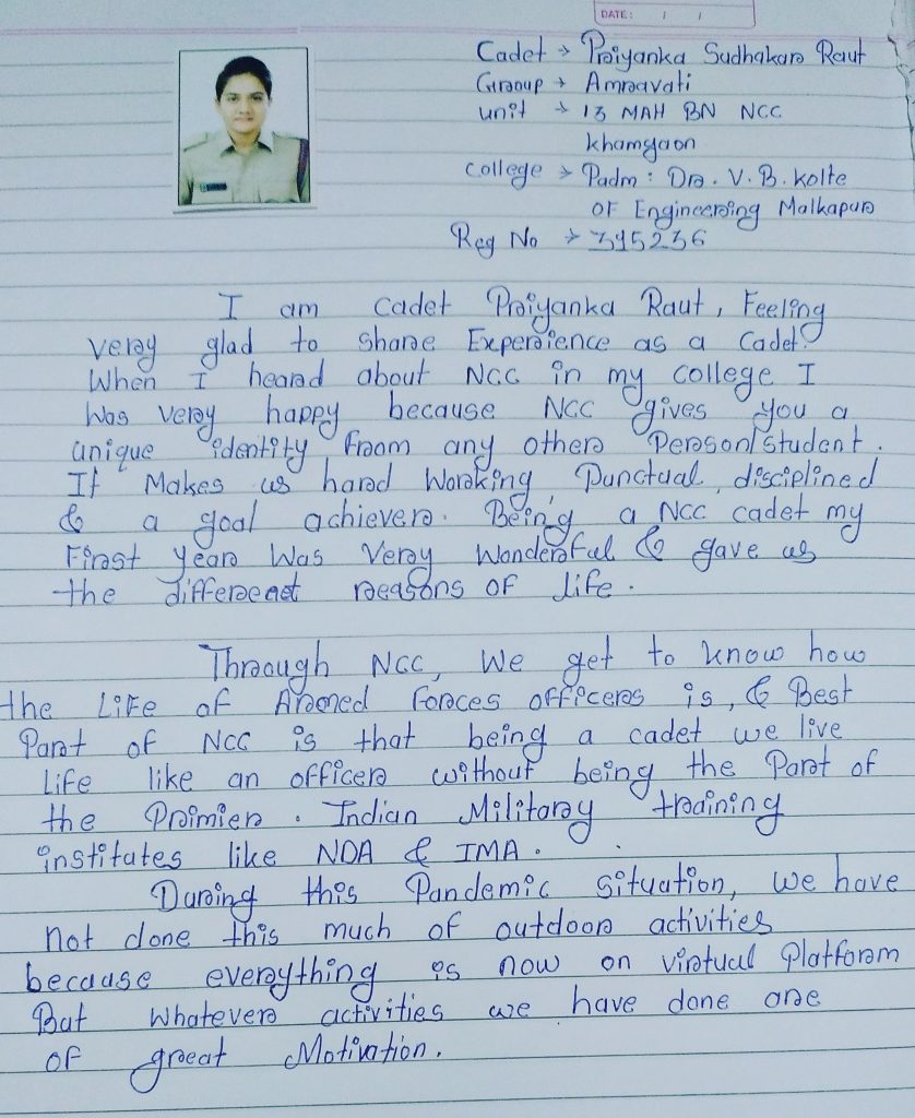 Priyanka sudhakar raut 13 Mah.BN khamgao Clg-dr. v.b.kolte clg of Engineering malakapur Topic-NCC expreience