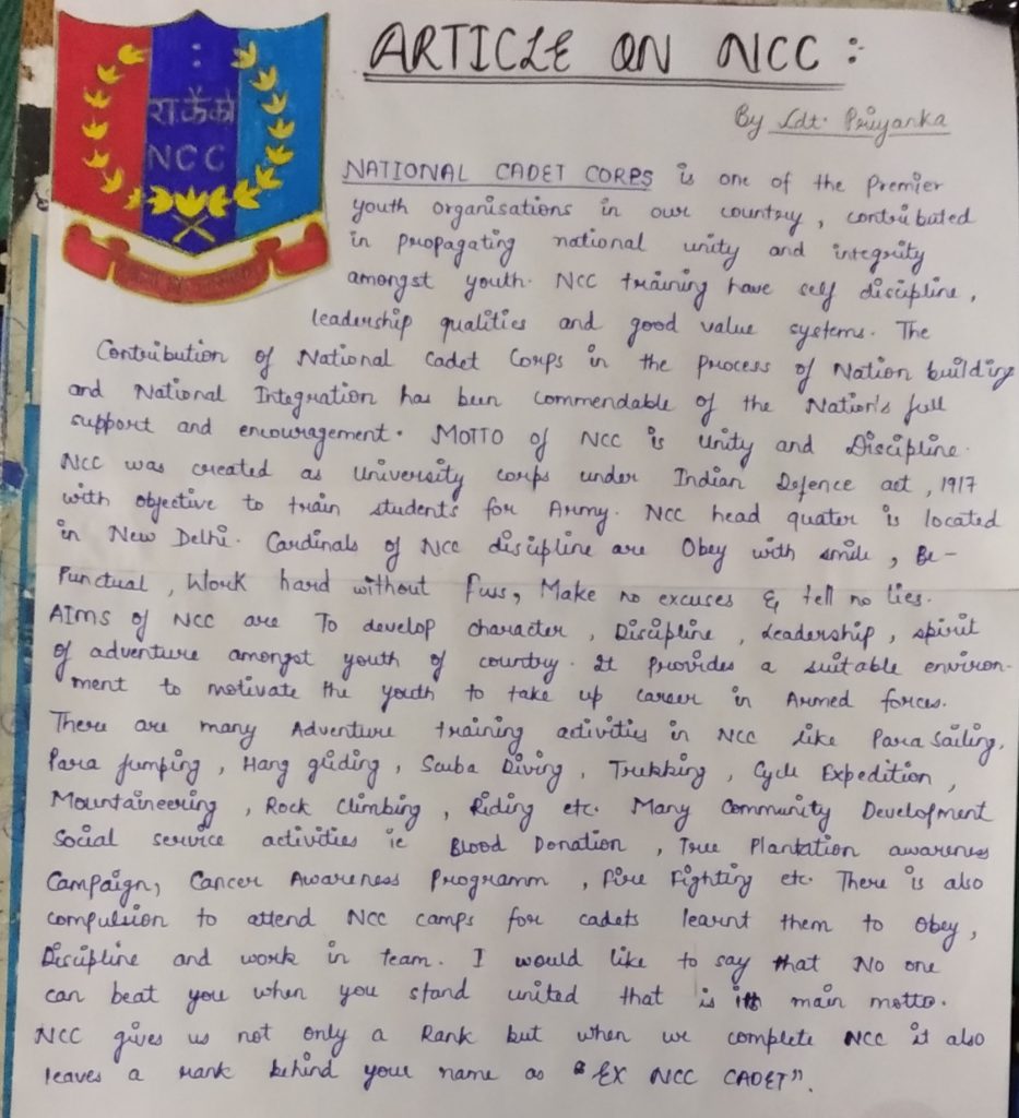 Unit : Pb Girls Bn NCC ,