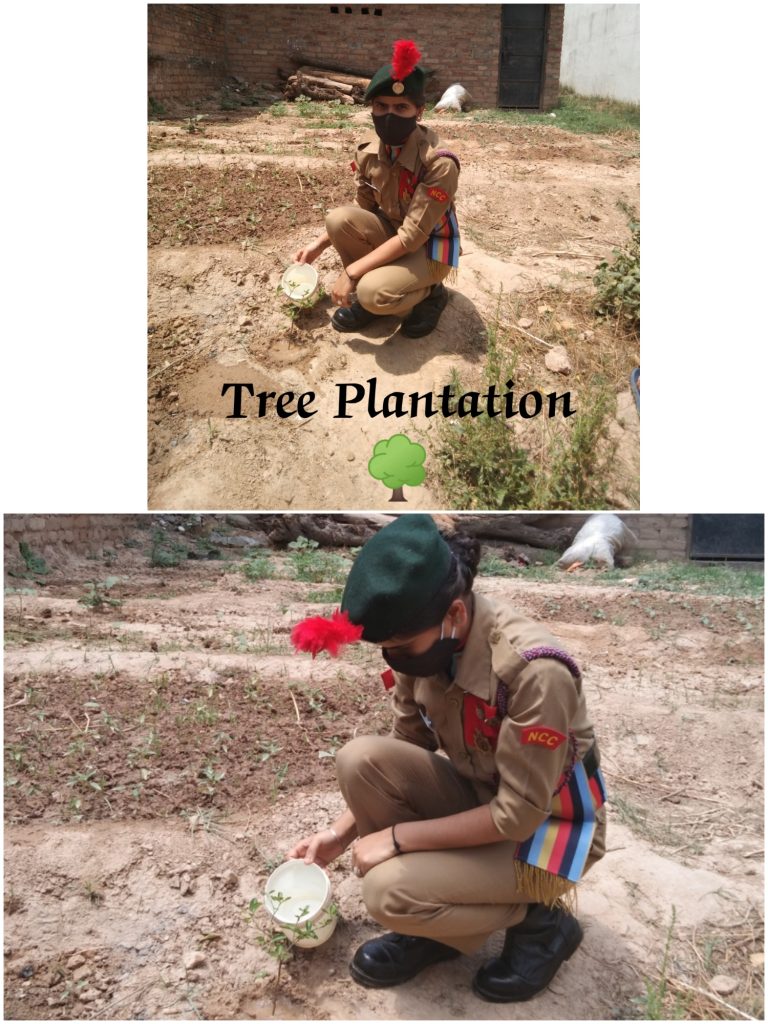 Tree plantation .... I planted 2 trees near my home ..... nd our all ncc cadet planted more than ...80 trees