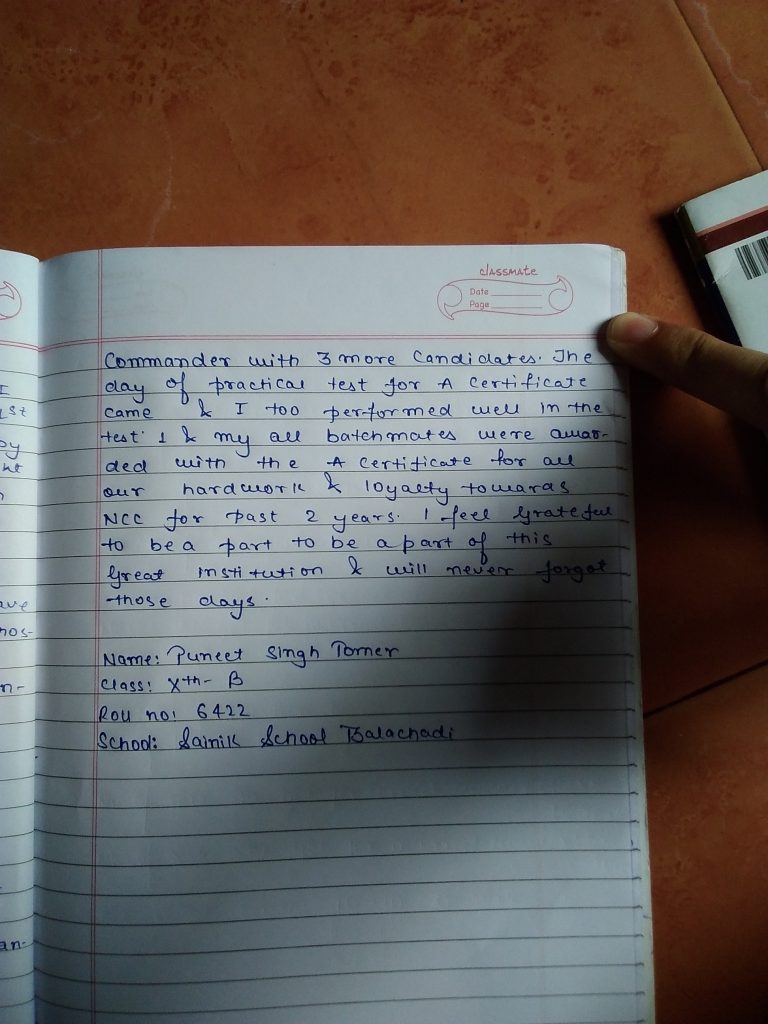 My name is Cdt Puneet Singh Tomer of Sainik school Balachadi.