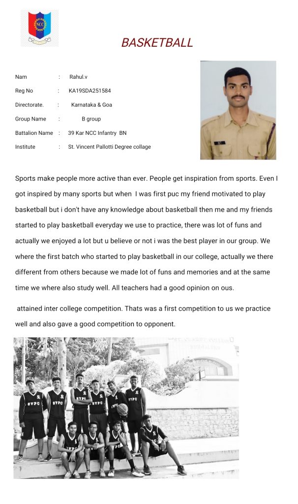 I Rahul.v from St Vincent pallooti collage, I have shared my experience in basketball,