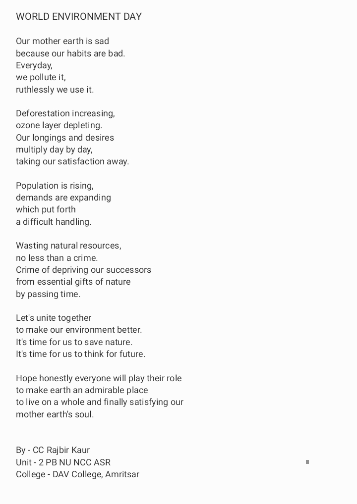 The poem is written by CC Rajbir Kaur who is a cadet of 2 PB NU NCC ASR and a student of DAV College, Amritsar.