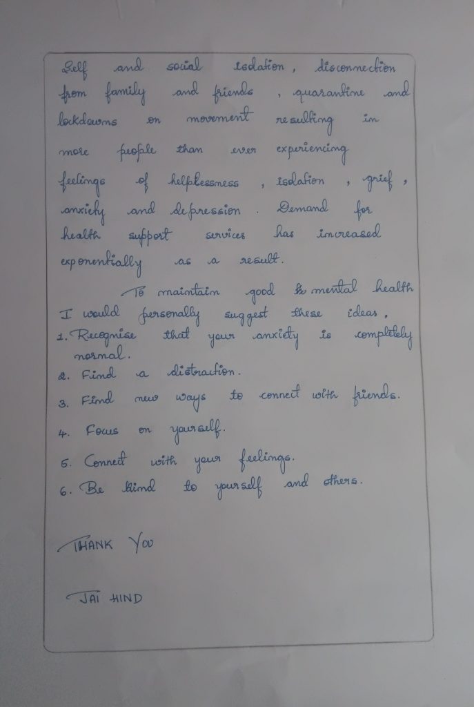 I would say Mental Health ain't just a topic on debate but a serious need during pandemic too .