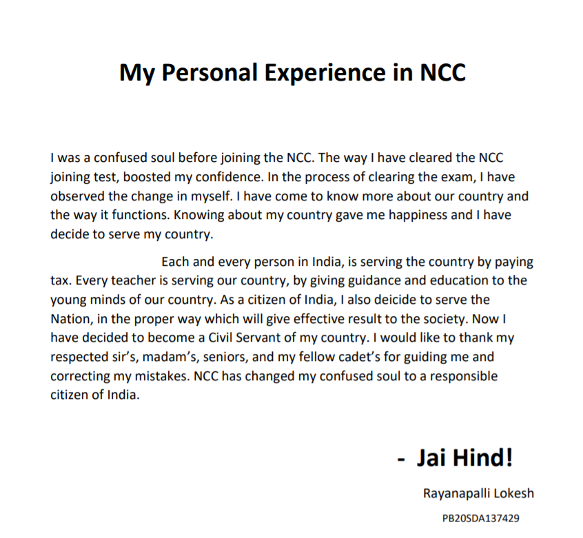 My Personal Experience in NCC