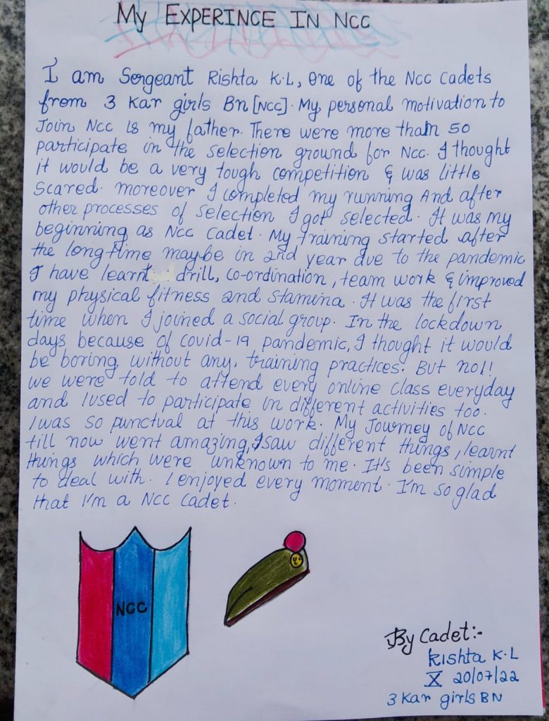 Cadet :-RISHTA K.L(3 kar girls bn kV school mysore