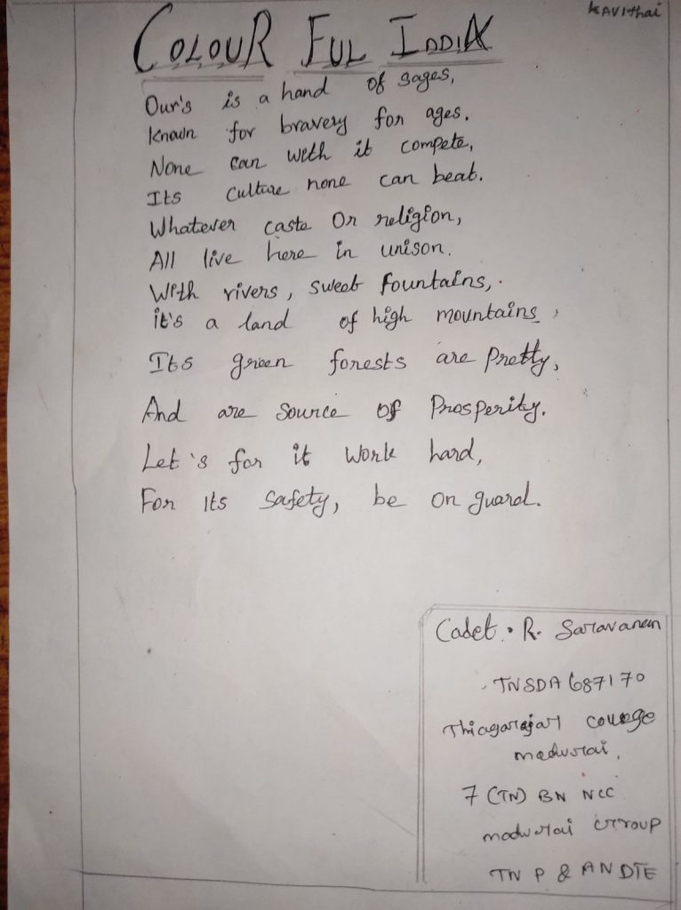 Cadet.R.Saravanan Thiagarajar College, Madurai 7(TN) Bn. NCC, Madurai Group, TN,P & AN DTE