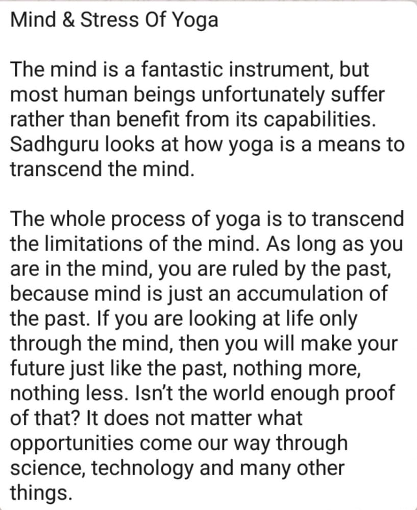 Mind & stress of yoga the mind is a fantastic instrument, but most human being unfortunately suffer rather than benefit from its capabilities. Sadhguru looks at how yoga is a means to transcend