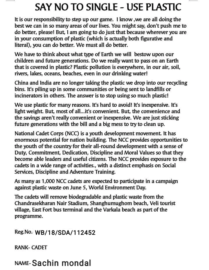 Name:-sachin mondal Rank : cadet Reg no: WB18SDA112452