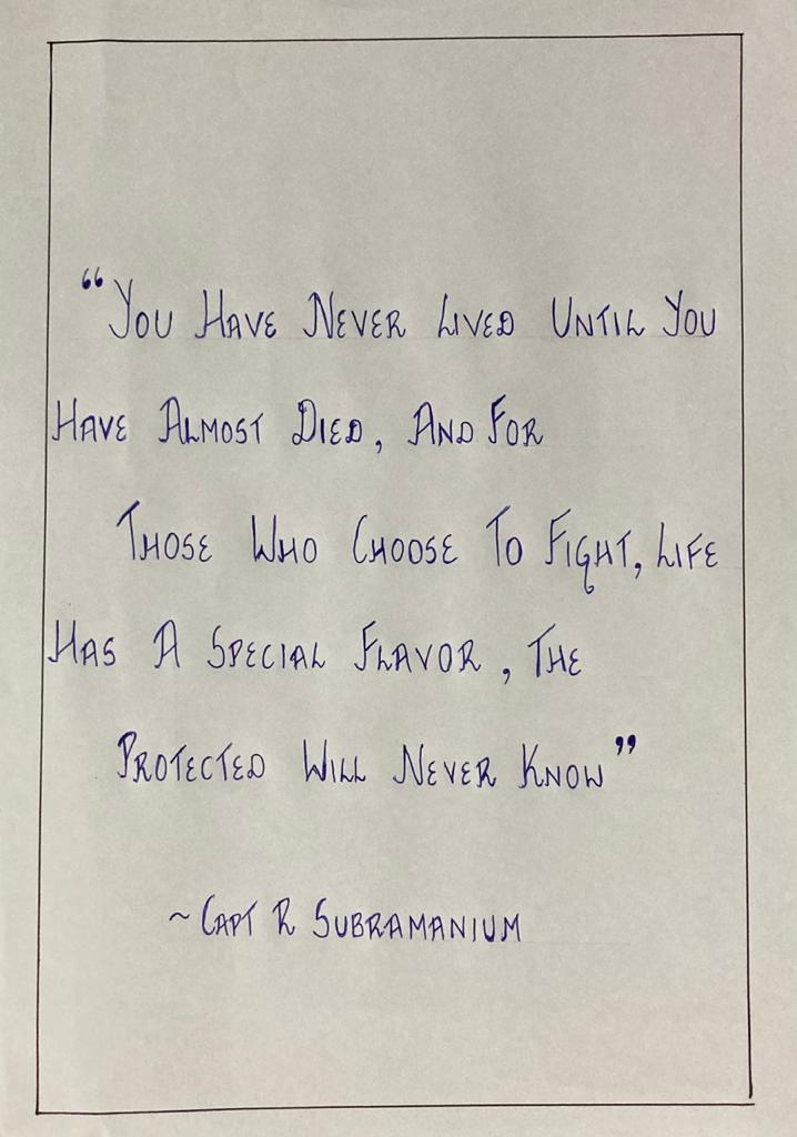 Capt R Subramanian was born on 12th August 1976 in Goregaon, Mumbai. He had his primary education in Ahmedabad and returned to Mumbai in 1986 and completed his SSC in 1991. He was selected for the 90th course in NDA and joined in 1993.