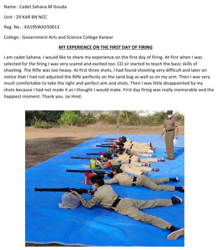 Name : Sahana M Gouda Reg. No. : KA19SWA550013 College : Government Arts and Science College. Unit: 29 KAR BN NCC