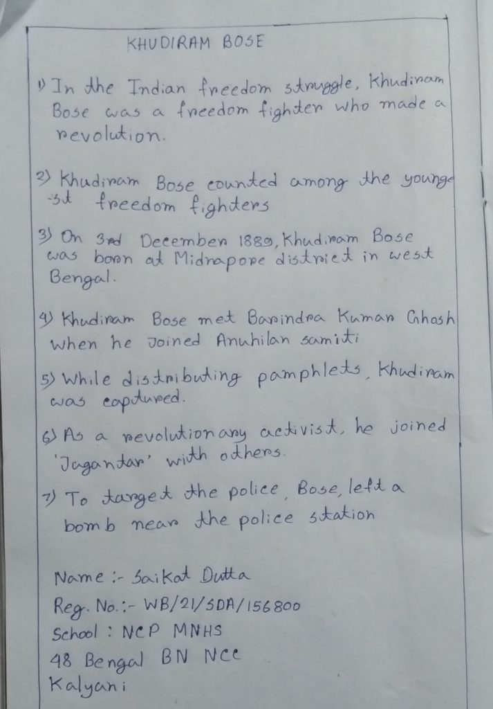 Name - Saikat Dutta Reg. No. - WB 21 SDA 156800 Institute - NCP MNHS 48 Bengal BN NCC Kalyani group