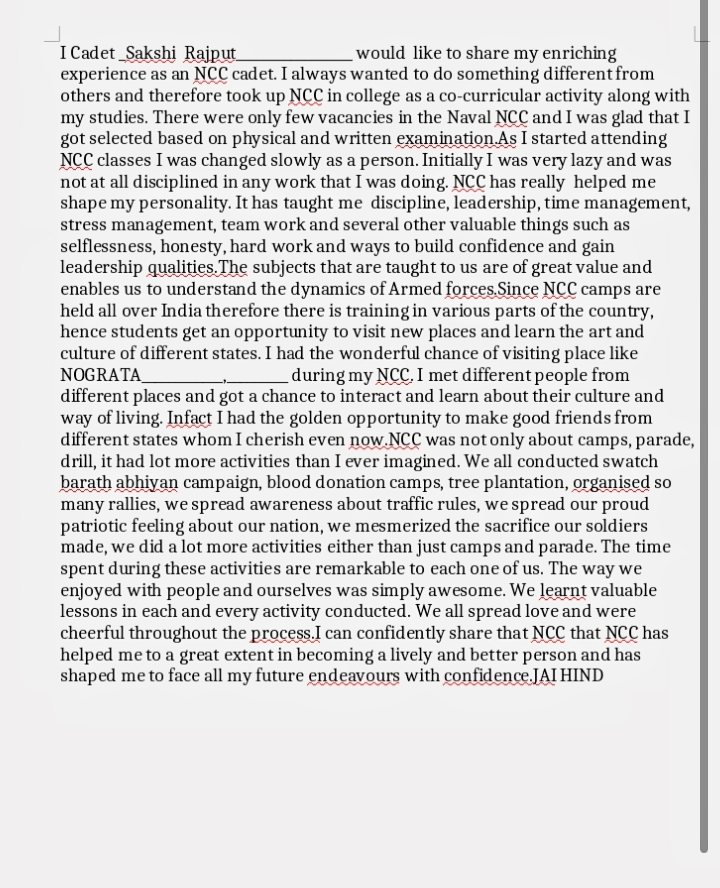Cadet Sakshi Rajput Jammu and Kashmir Grp HQ- Srinagar