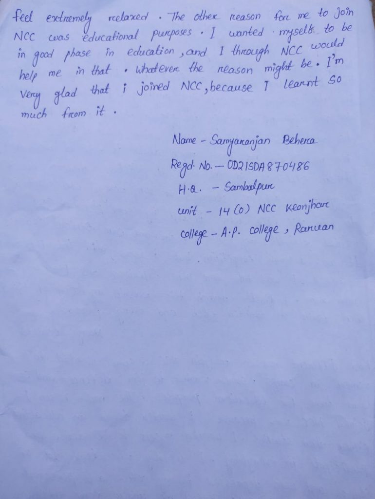 NAME-SAMYARANJAN BEHERA REG NO.:-OD21SDA870486 14TH ODISHA BN. KEONJHAR GROUP HQ:-SAMBALPUR