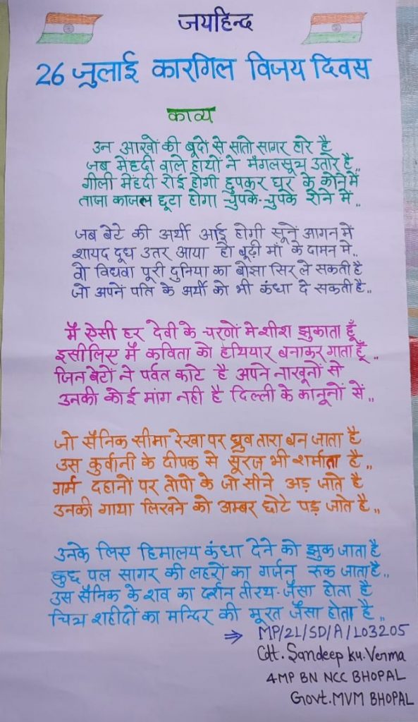 MP12/SDA/103205 , Cdt.Sandeep kumar verma , 4 MP BN NCC NCC Bhopal Group Govt.Motilal Vigyan Mahavidhyalay Bhopal (M.P. )