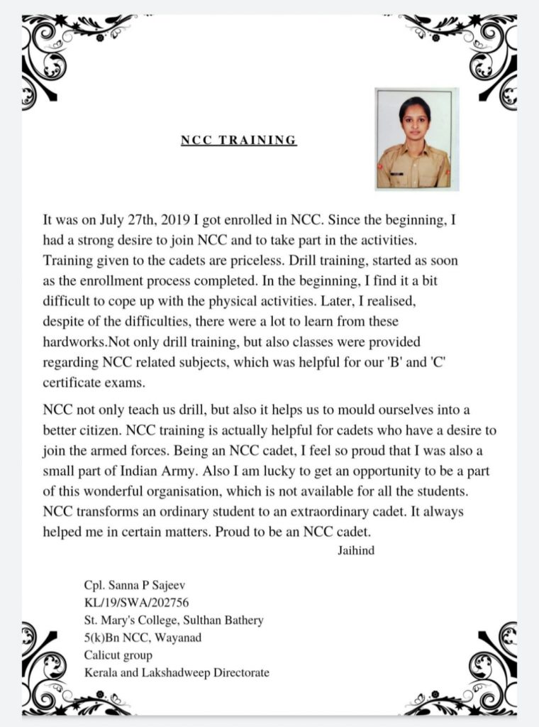 I am Cpl. Sanna P Sajeev of St. Mary\'s College Sulthan Bathery.