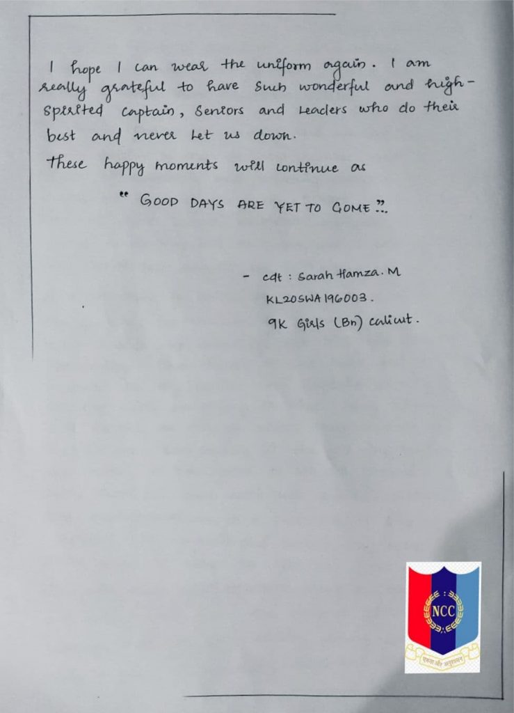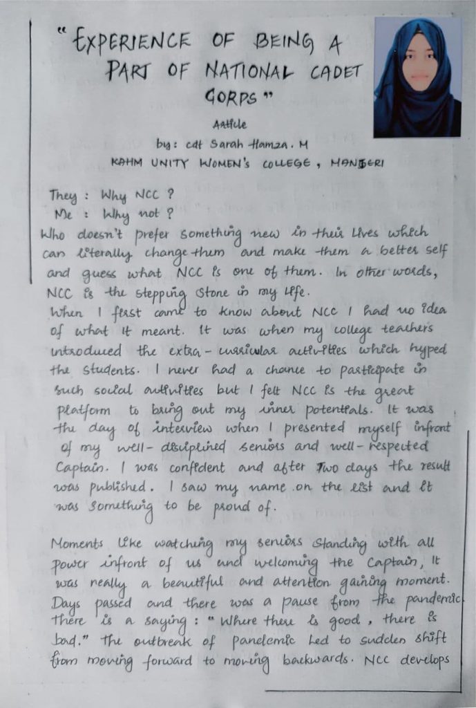 I'm cdt Sarah hamza. This article is all about the experience and knowledge I gained through NCC.